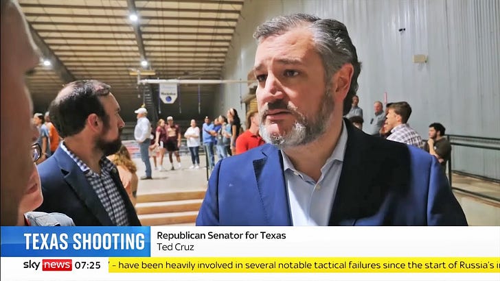 --Republican Texas Senator Ted Cruz is confronted about gun safety at an event in Texas by a Sky News journalist, and he doesn't like the line of questioning