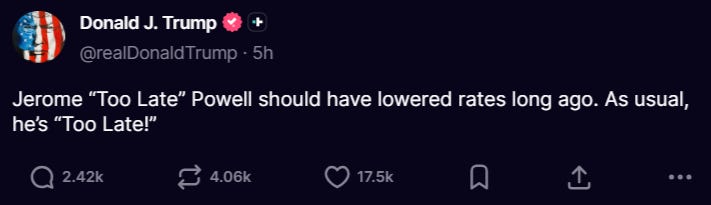 This is more than deflection. It’s a loyalty test for his supporters — a way of framing any criticism or bad news as part of an orchestrated plot, so that believing the jobs numbers means siding with the enemy.