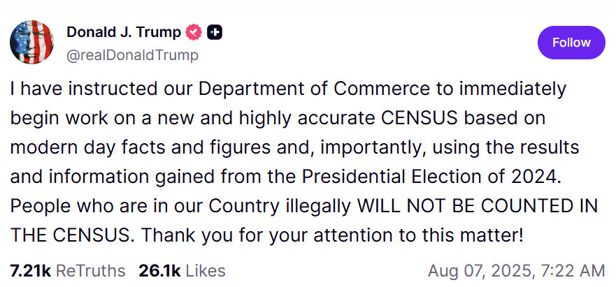 Donald Trump has proposed a new “highly accurate” census that would exclude undocumented immigrants, a sharp departure from the U.S. census practice since 1790. The 14th Amendment mandates counting all persons for congressional apportionment, not just citizens. This approach could suppress census participation in Hispanic and immigrant communities, leading to undercounts, loss of congressional seats in some states, and reduced federal funding.
