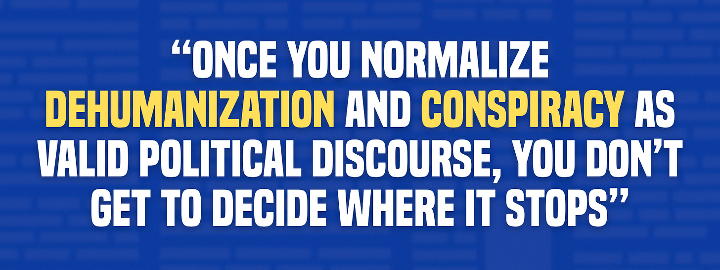 Once you normalize dehumanization and conspiracy as valid political discourse, you don’t get to decide where it stops. You don’t get to say, “Well, this level of bigotry is fine, but let’s not go full Nazi.”