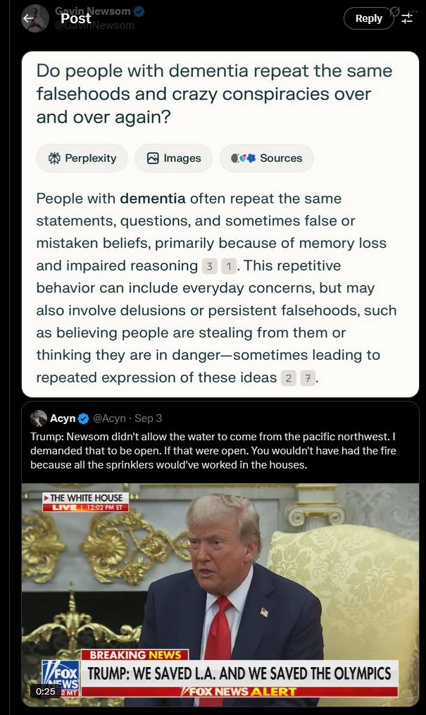 California Governor Gavin Newsom recently dropped what you could fairly call a dementia bomb on Trump.