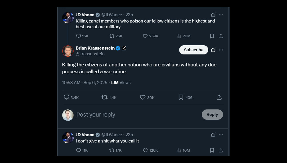 This week Vance tweeted that “killing cartel members who poison our fellow citizens is the highest and best use of our military.”